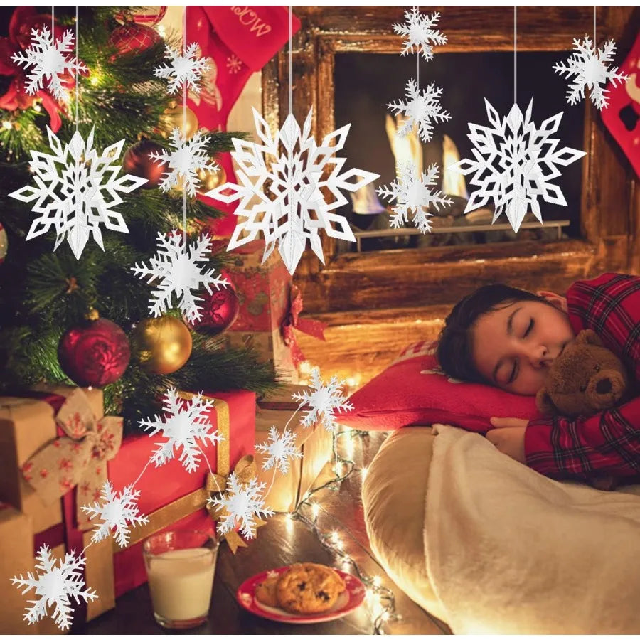 24Pcs 3D White Paper Snowflake Garland for Christmas Decor