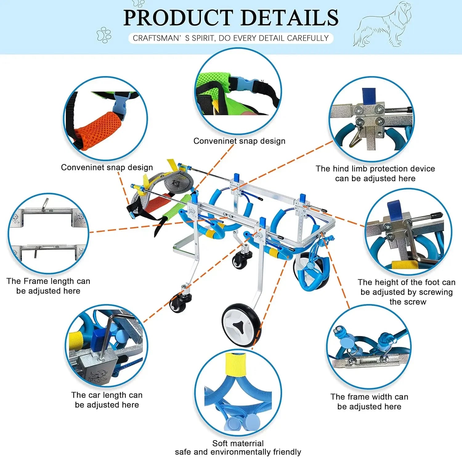 Designed with aviation aluminum, the unit is lightweight yet incredibly sturdy, so you can support your furry friend without adding unnecessary weight. The front wheel is a universal wheel, making steering effortless and giving you precise control as your dog regains confidence on every outing.