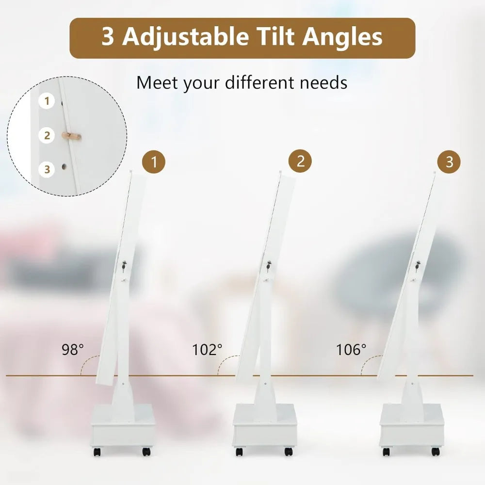 - Full-length view & adjustable tilt: a 41.5" x 10.5" mirror delivers a head-to-toe check, with 3-position tilt at 98°, 102°, and 106° for a personalized angle.