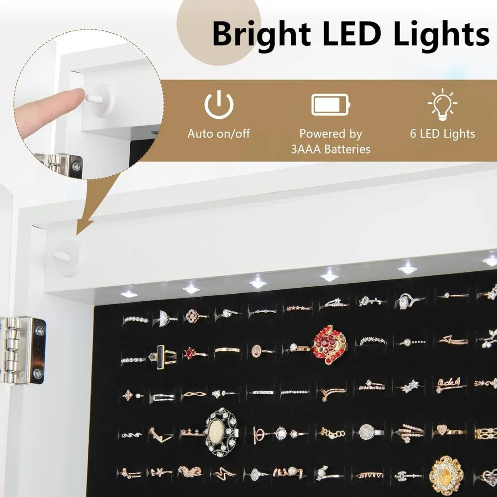 - Lighted clarity & security: 6 auto-on LED lights illuminate your jewelry in dim rooms, and a two-key lock keeps valuables protected.