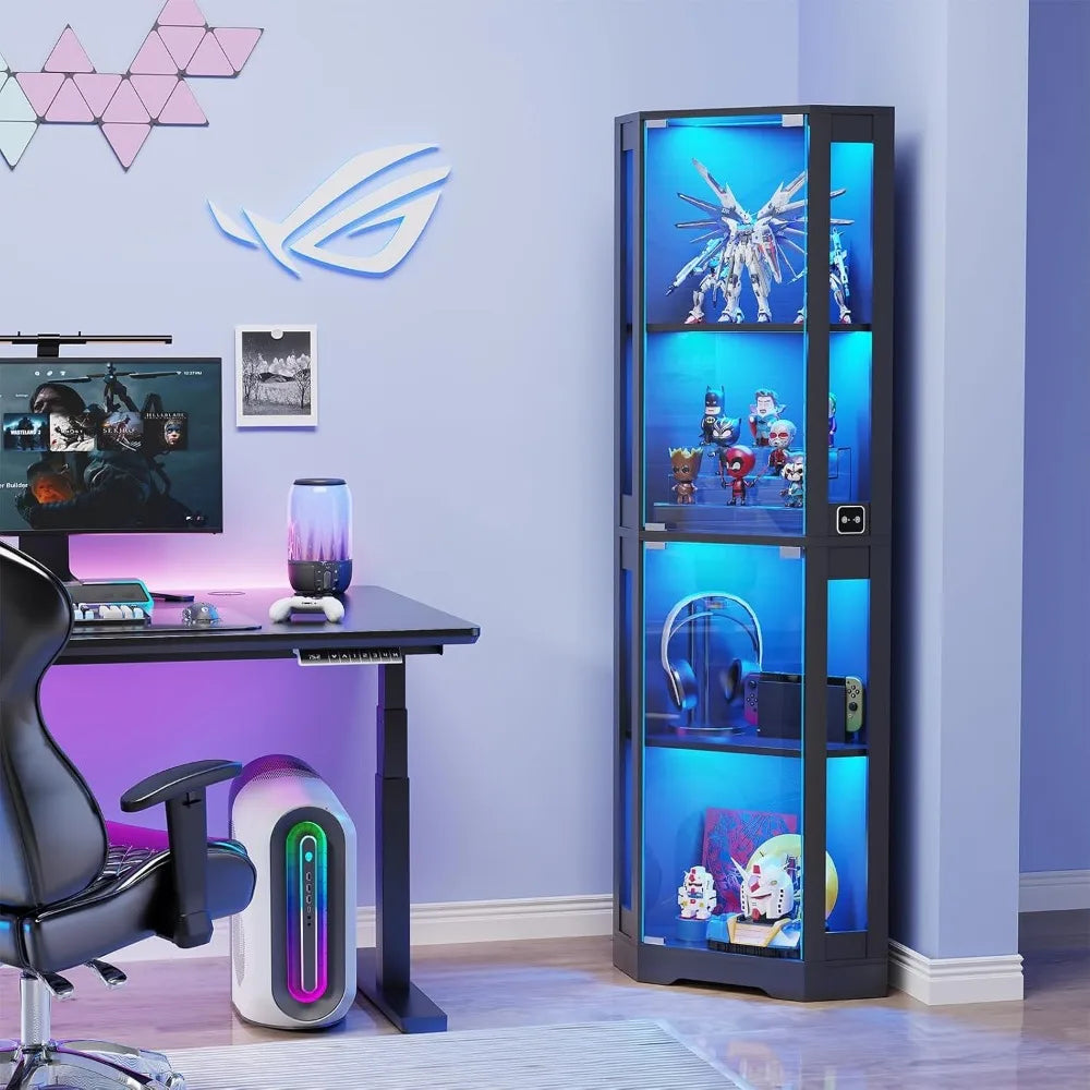 - Maximized Corner Storage: 2 side acrylic doors and four triangular corner shelves to showcase collectibles, figures, antiques, wine, books, and decor.