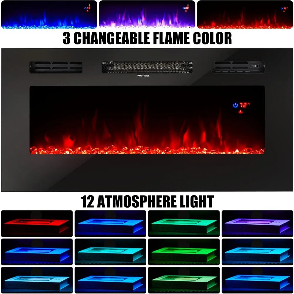 - Cozy, programmable warmth: 36" electric fireplace with remote, 3 flame colors, 5 dimmer levels, temperature control, timer, and 750W/1500W heat modes delivering up to 4,800 BTU for spaces up to 400 ft².
